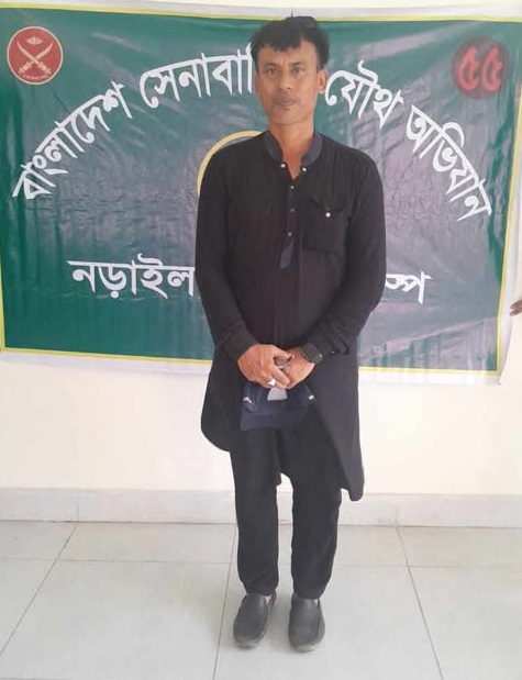 ৩০ মে বিকেল আনুমানিক ১৭৩০ ঘটিকায় সেনাবাহিনীর একটি নিয়মিত টহল দল মাইজপাড়া হাটে নিয়মিত নজরদারির সময় দেখতে পায়, একজন ইজারাদার সরকারি নির্ধারিত হারের বাইরে অতিরিক্ত ইজারা আদায় করছেন। অভিযুক্ত ব্যক্তি এস এম শামসুজ্জামান খোকন (৫০), রূপগঞ্জ বাজার, নড়াইল সদর এলাকার বাসিন্দা। তিনি গরুপ্রতি ১,০০০ থেকে ১,৩০০ টাকা পর্যন্ত আদায় করছেন। অথচ সরকারি হার অনুযায়ী গরুপ্রতি ইজারা ৬০০ টাকা এবং ছাগলপ্রতি ২০০ টাকা নির্ধারিত আছে।