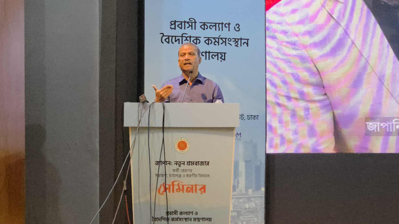 বুধবার (০২ জুলাই) আন্তর্জাতিক মাতৃভাষা ইন্সটিটিউটে প্রবাসী কল্যাণ ও বৈদেশিক কর্মসংস্থান মন্ত্রণালয় আয়োজিত ‘জাপানের শ্রমবাজার : সম্ভাবনা ও চ্যালেঞ্জ’ শীর্ষক এক সেমিনারে এ কথা জানান তিনি।