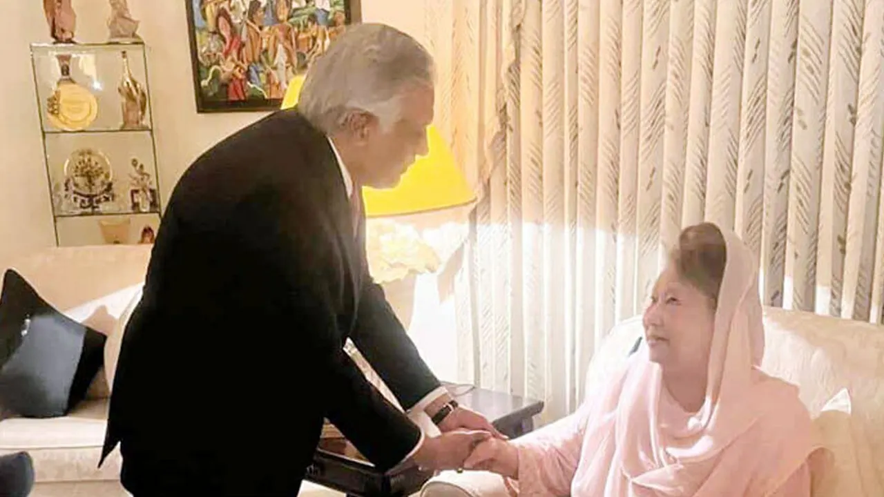বিএনপির মিডিয়া সেলের সদস্য শায়রুল কবির খান বলেন, ‘বেগম খালেদা জিয়ার স্বাস্থ্যের খোঁজ নিতে তার বাসায় এসেছেন বাংলাদেশে সফররত পাকিস্তান উপপ্রধানমন্ত্রী ও পররাষ্ট্রমন্ত্রী ইসহাক দার।’