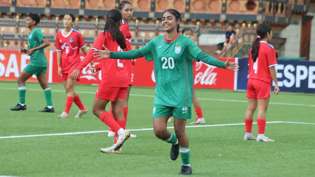 সাফ অনূর্ধ্ব-১৭ নারী চ্যাম্পিয়নশিপে দুর্দান্ত ধারাবাহিকতা বজায় রেখেছে বাংলাদেশ। ভুটানের চাংলিমিথাং স্টেডিয়ামে বুধবার (২৭ আগস্ট) বিকেলে নেপালকে ৪-১ গোলে হারিয়েছে লাল-সবুজের কিশোরীরা। দলের হয়ে জোছনা ছড়িয়েছেন সুরভী আকন্দ প্রীতি, করেছেন দারুণ এক হ্যাটট্রিক।