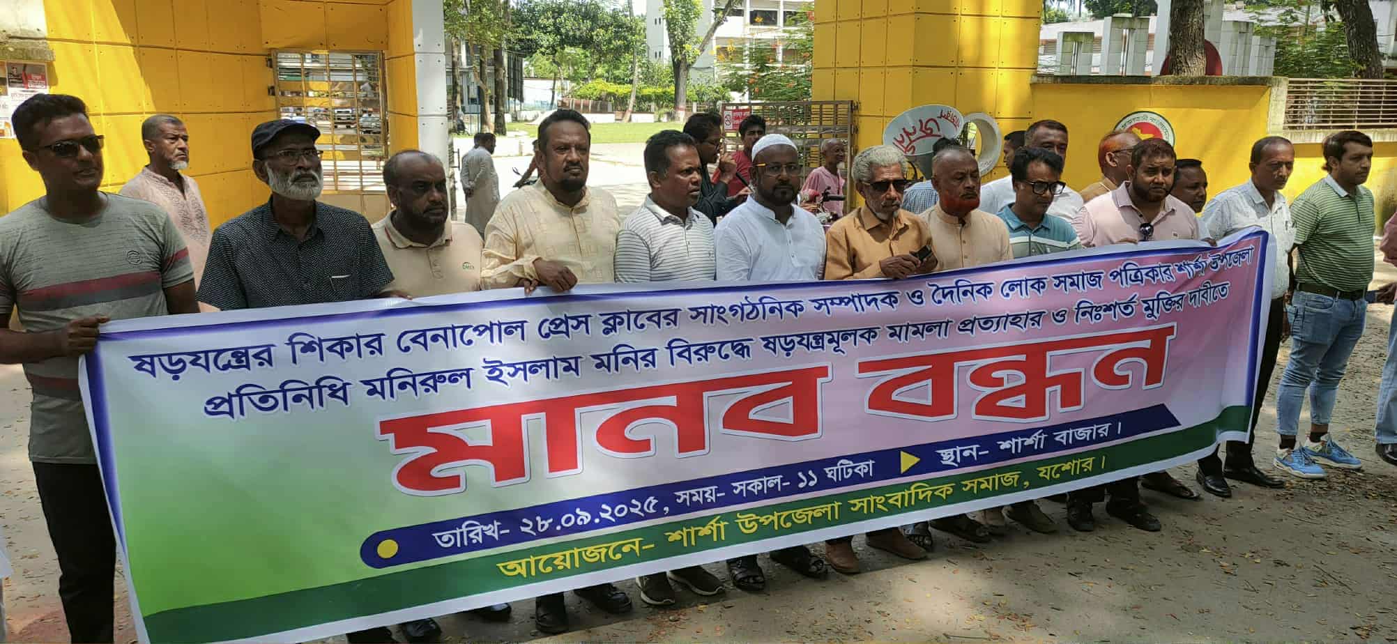 শার্শায় সাংবাদিক মনির মুক্তির দাবিতে মানববন্ধন, ওসির অপসারণ দাবি